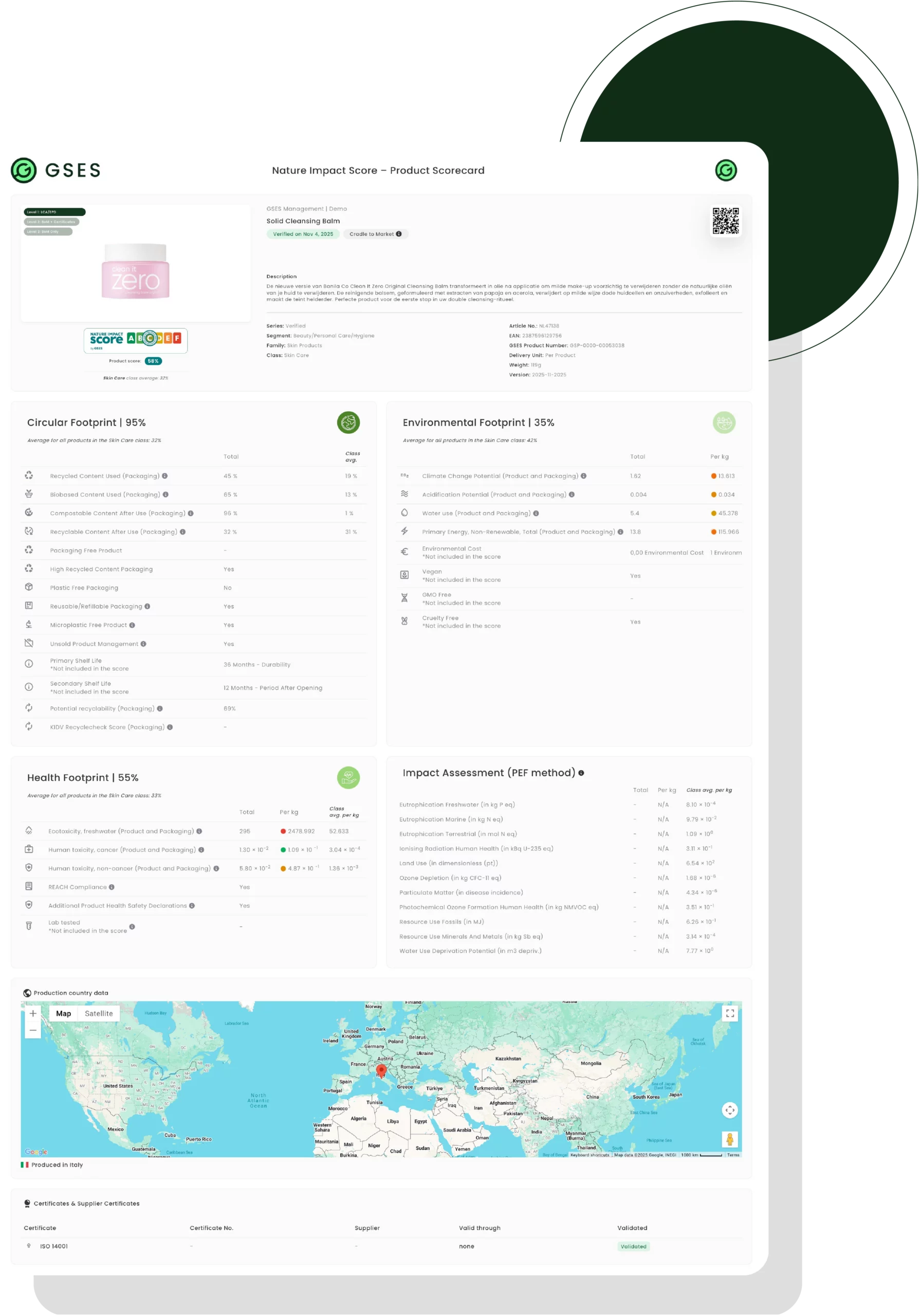 Calculate product scores based on environmental, circular, and health footprints (using the Nature Impact Rating Methodology).